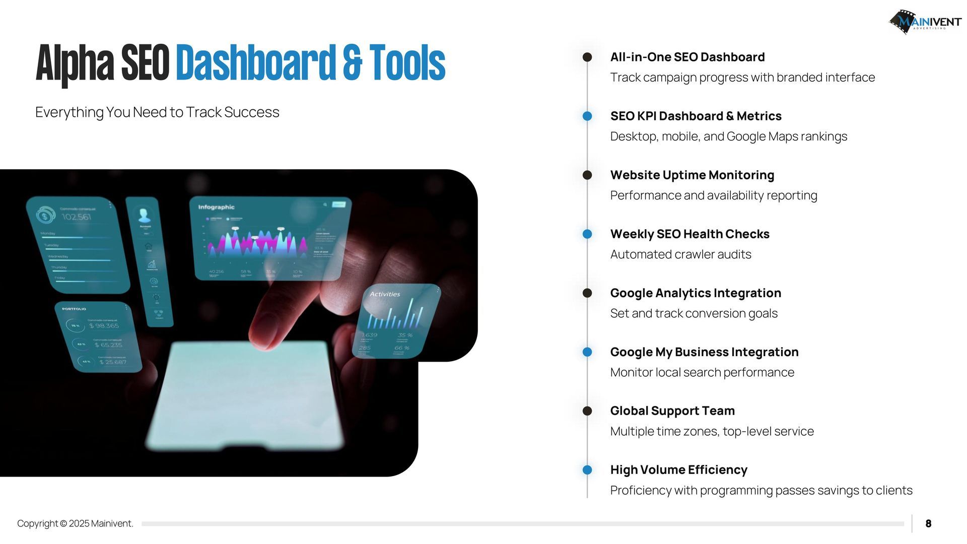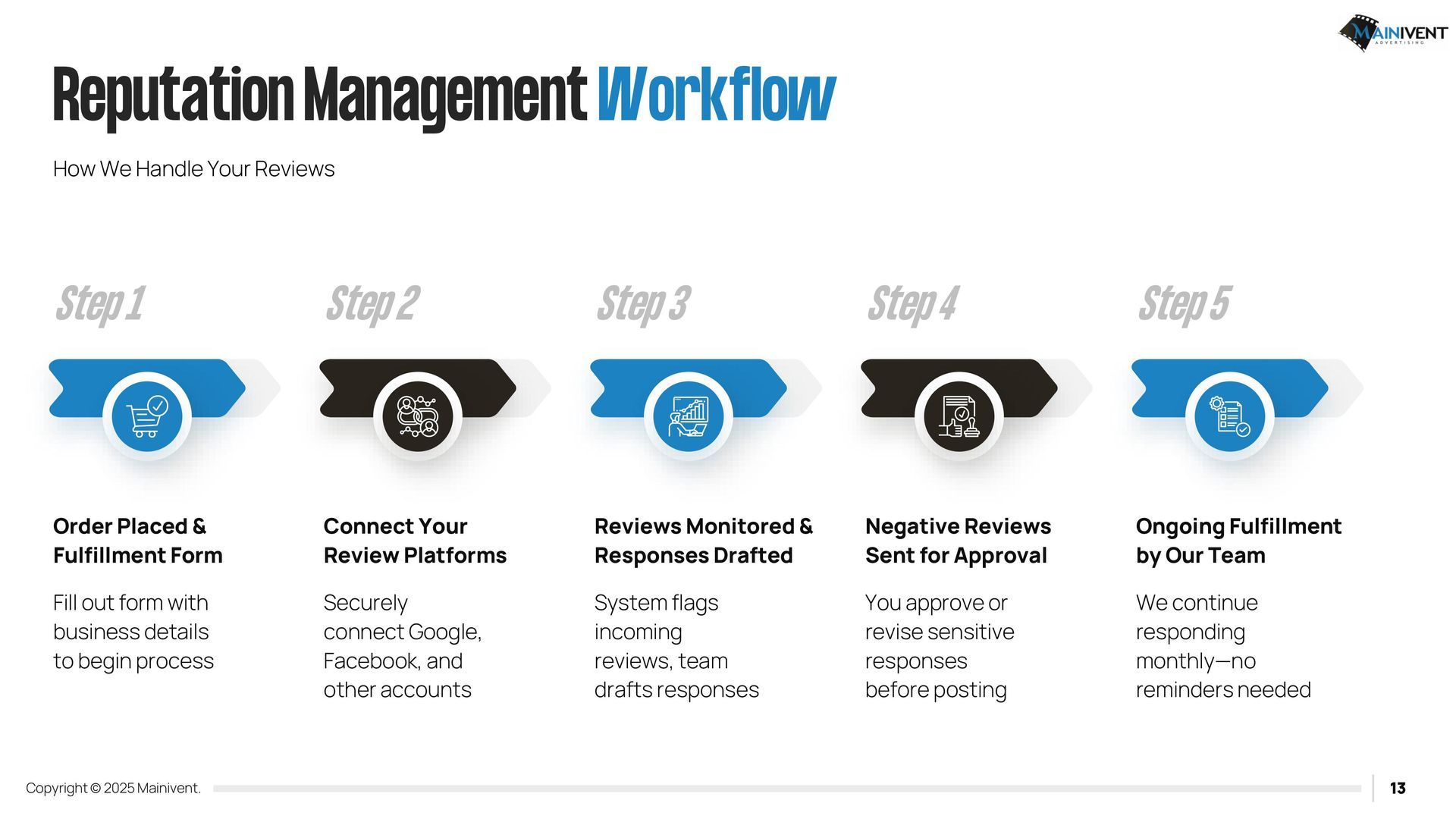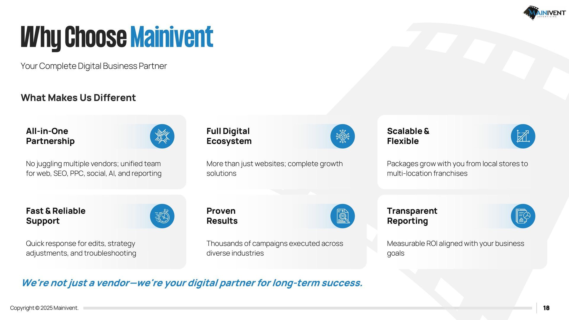 Mainivent Advertising Agency is a full-service website advertising company. We will provide you with a Username and Password so that you can edit and have your website forever. If you have chosen one of the packages, it will include our services to update your website monthly. We will need access to your Domain provider if you wish to use an existing URL, if you do not, we can purchase a new one for your business. These packages require (2) plug ins. IDX Broker and Realty Candy.