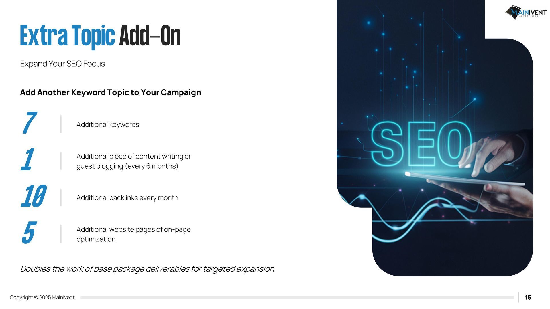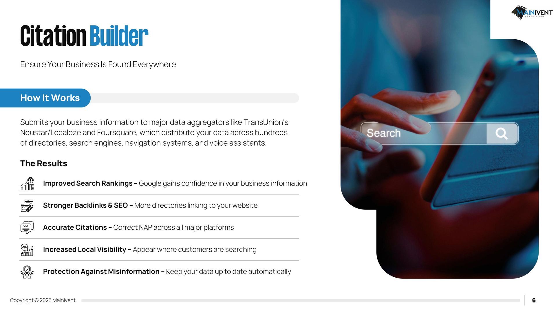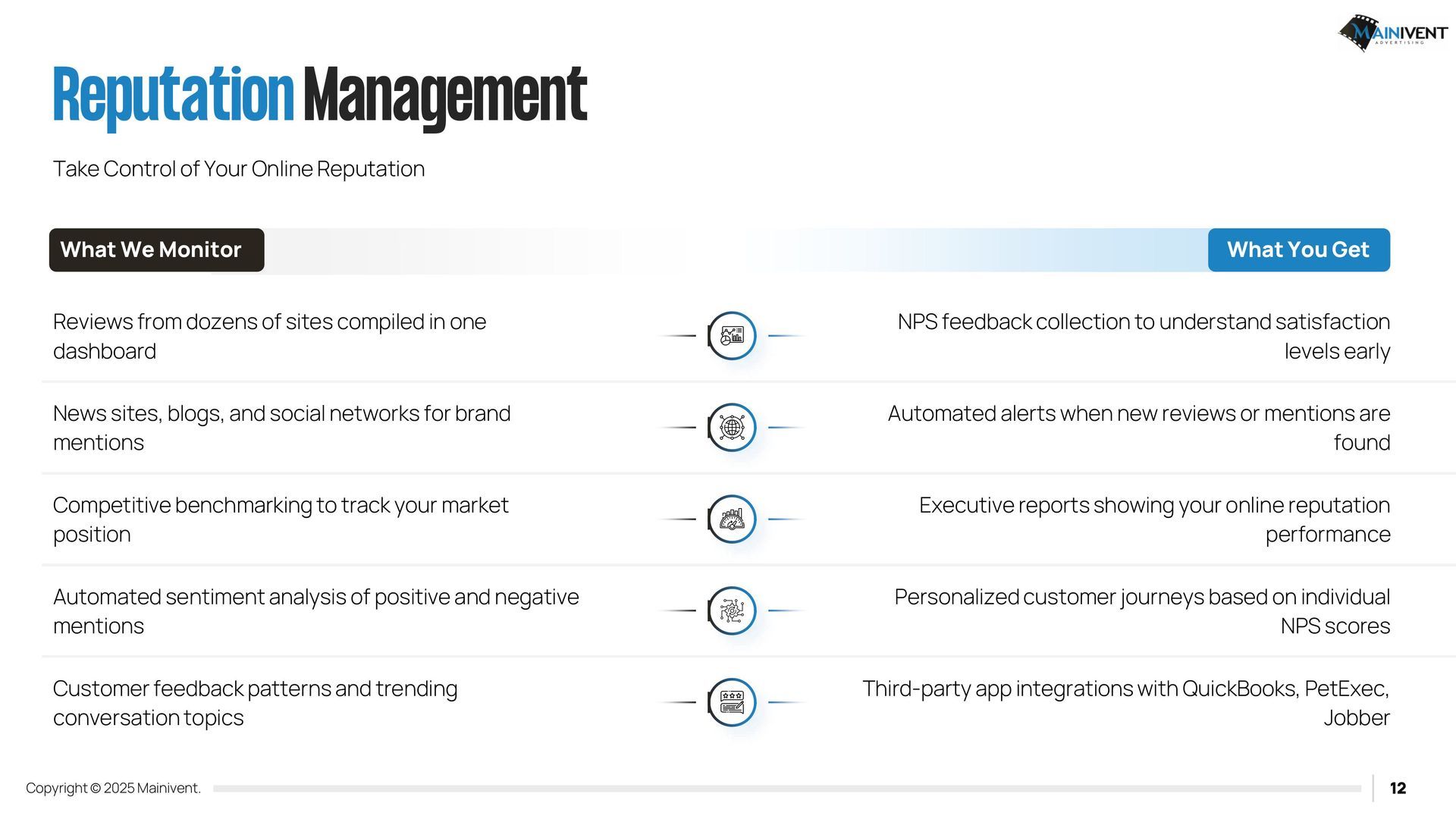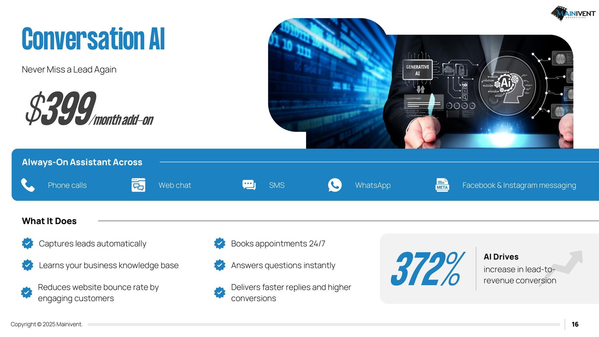 Mainivent Advertising Agency is a full-service website advertising company. We will provide you with a Username and Password so that you can edit and have your website forever. If you have chosen one of the packages, it will include our services to update your website monthly. We will need access to your Domain provider if you wish to use an existing URL, if you do not, we can purchase a new one for your business. These packages require (2) plug ins. IDX Broker and Realty Candy.